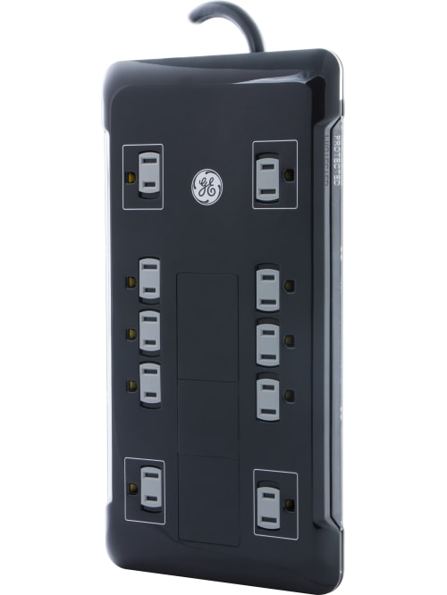 Ge Ultrapro 12 Outlet Surge Protector With 2 Usb Tether 8 Ft Long Cord 4320 Joules Outlet Safety Covers Black 11824 Office Depot